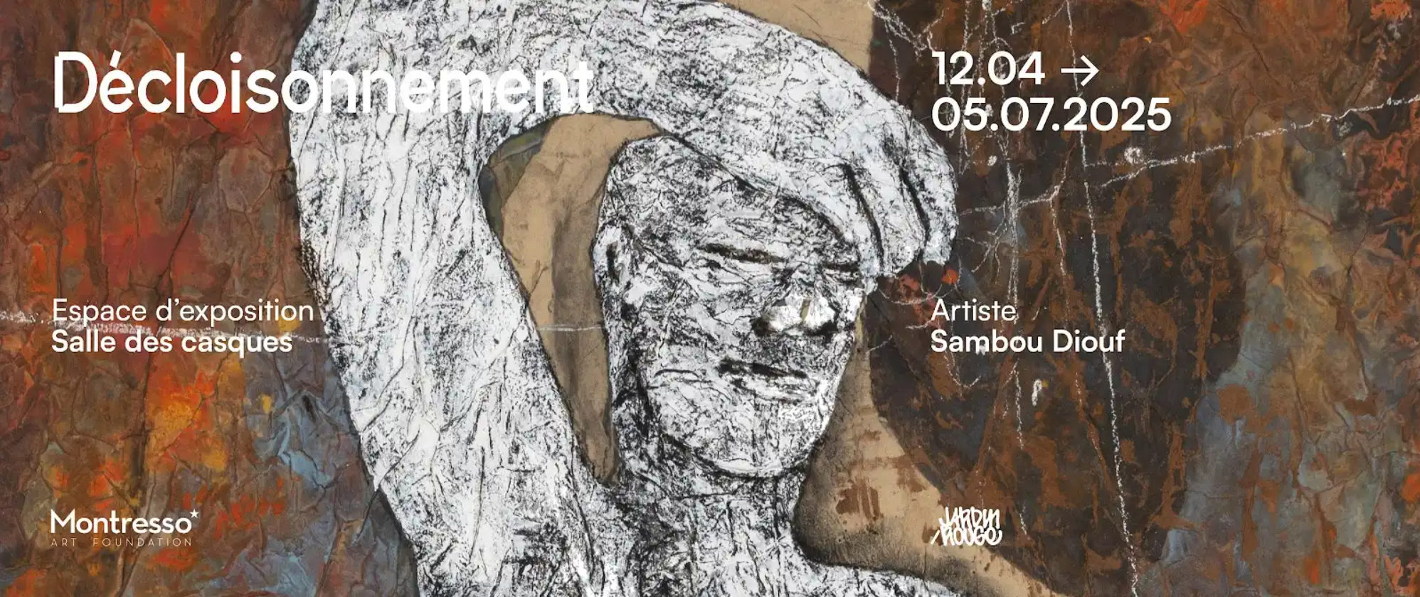 Au sein de la salle des casques de la Fondation Montresso sera présentée du 12 Avril au 5 Juillet 2025, la restitution du projet DÉCLOISONNEMENT de l’artiste Sambou Diouf.