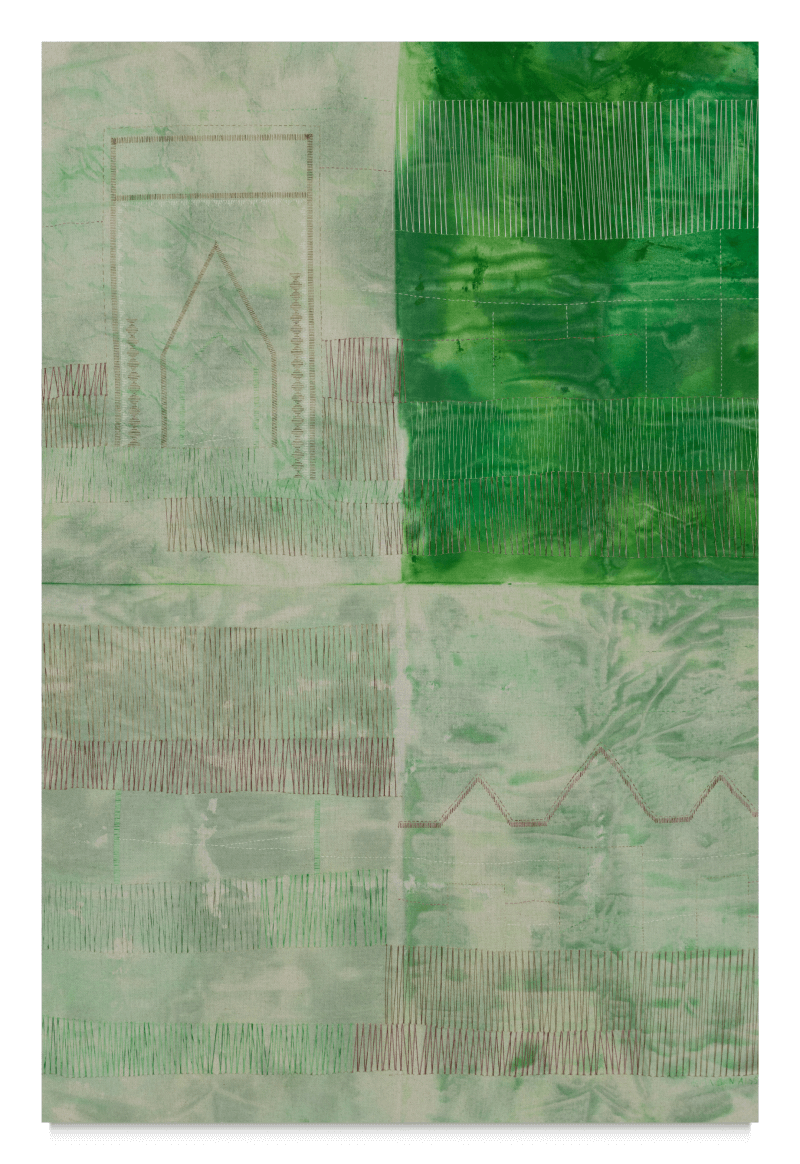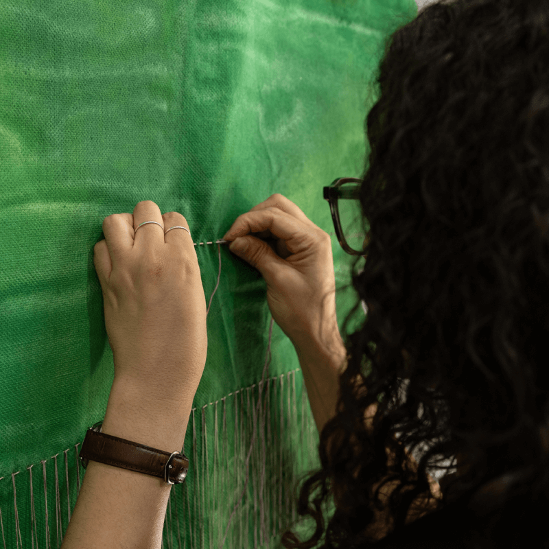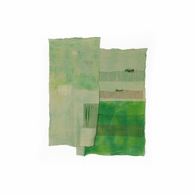 La couture comme strates d’analyses, la broderie et le pliage ouvrent des fenêtres d’interprétation aux rêves d’Asma Ben Aissa. Expérimentant teintures et techniques transmises par le matrimonial intime, ses oeuvres croisent les similitudes symboliques ornant vêtements et habitats traditionnels. Le fil devient outil de sa contemplation sur la matérialité du textile, lien de médiation entre jardins oniriques et leur influence sur notre perception du monde extérieur.
