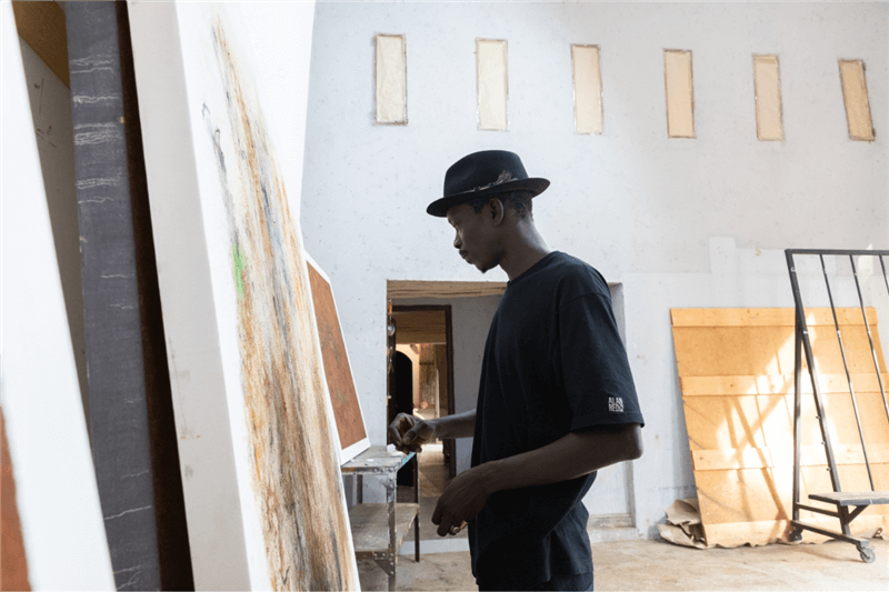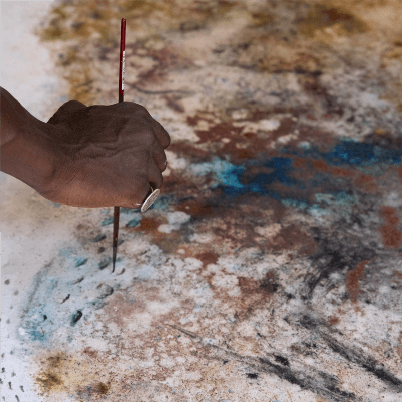 Parsemer des graines au-dessus de ses œuvres, planter un arbre à chacun de ses passages, Aliou Diack recrée un microcosme où les détails ne se donnent à voir qu’au plus proche de la toile on y découvre toute la subtilité de la première puissance. Sans s’enfermer dans les croyances et les traditions, Aliou Diack puise dans ses connaissances ancestrales pour soigner par l’art, des pigments de plantes médicinales transmis par son grand-père chaman, intégrant la nature et le mystique à la création.