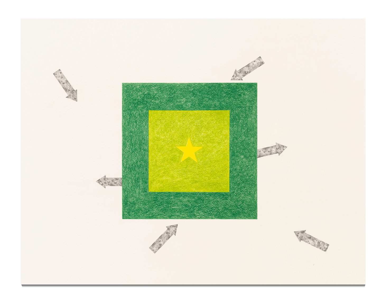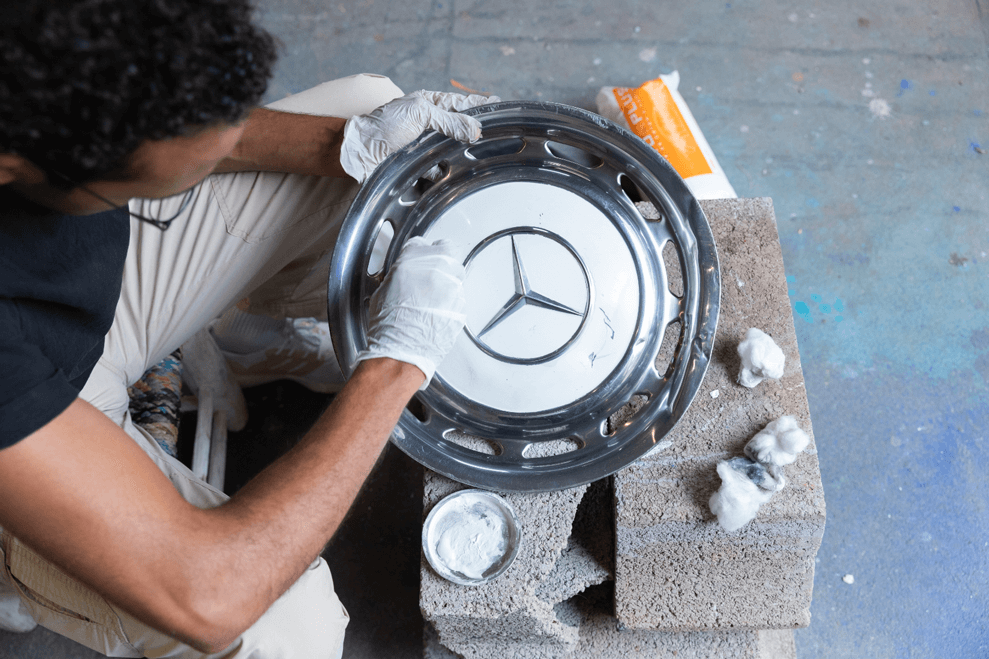 Suivant une iconographie des routes, l’extrapolation de signes et de symboles composent une « poésie routière » transcrite par l’œil de l’artiste. La multiplicité des véhicules, tels les taxis, camions et triporteurs, anime des dessins sobres et sublimés. Du papier à l’utilisation d’objets mécaniques, les œuvres d’Anas Guermouj intègrent un procédé pluriel où la géométrie et l’écriture se rejoignent dans la réinterprétation d’un langage omniprésent mais souvent ignoré dans sa valeur esthétique.