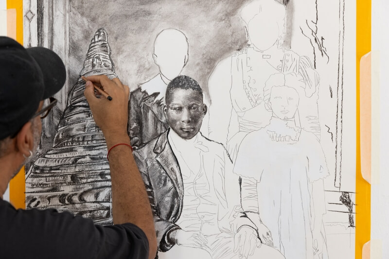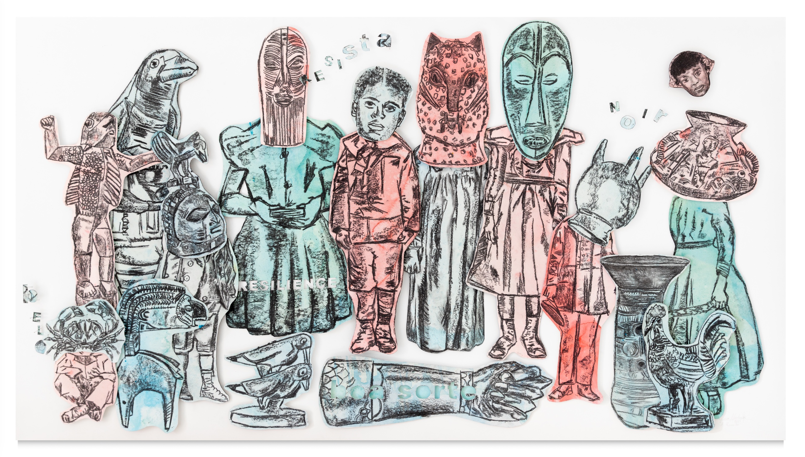 À travers ses oeuvres multi-couches, il recompose des fragments de mémoire, évoquant la diaspora des Africains vers le Brésil au cours du XVIIIe siècle. Puisant dans les archives et dans les manuels de botanique comme dans sa propre banque d’image, l’artiste compose son ascendance dans un univers poétique aux messages politiques. La nature émerge de ses compositions pour créer du lien historique entre les personnages et métaphorique entre les idées. Navigant habilement entre le dessin et la peinture, Cássio Markowski mêle beauté et délicatesse à une combinaison de perceptions dissonantes, faisant de chaque toile un espace de réflexion. En posant un regard nuancé sur les relations entre le Brésil et ses racines africaines, l’artiste offre une perspective unique de notre mémoire collective.