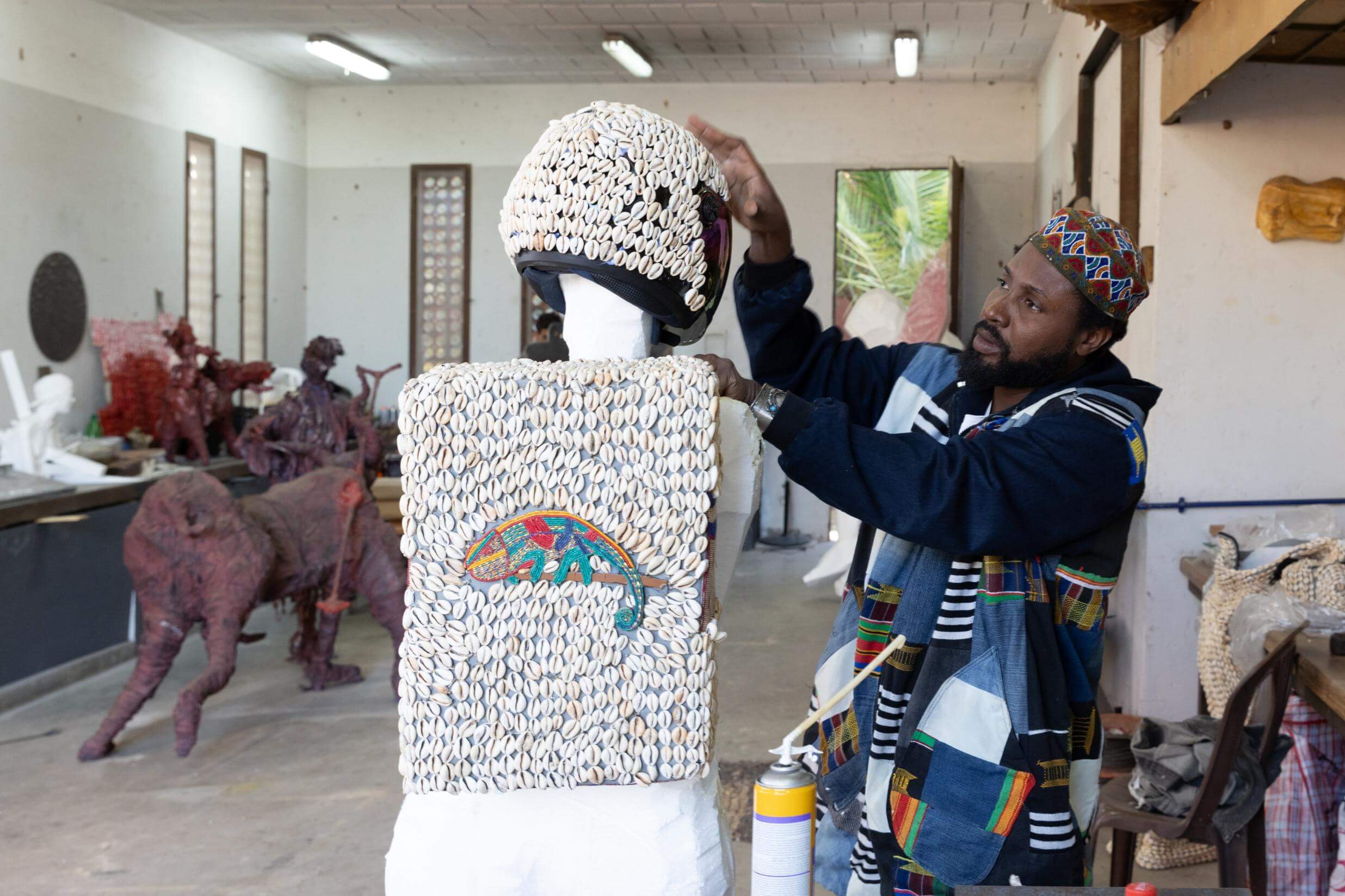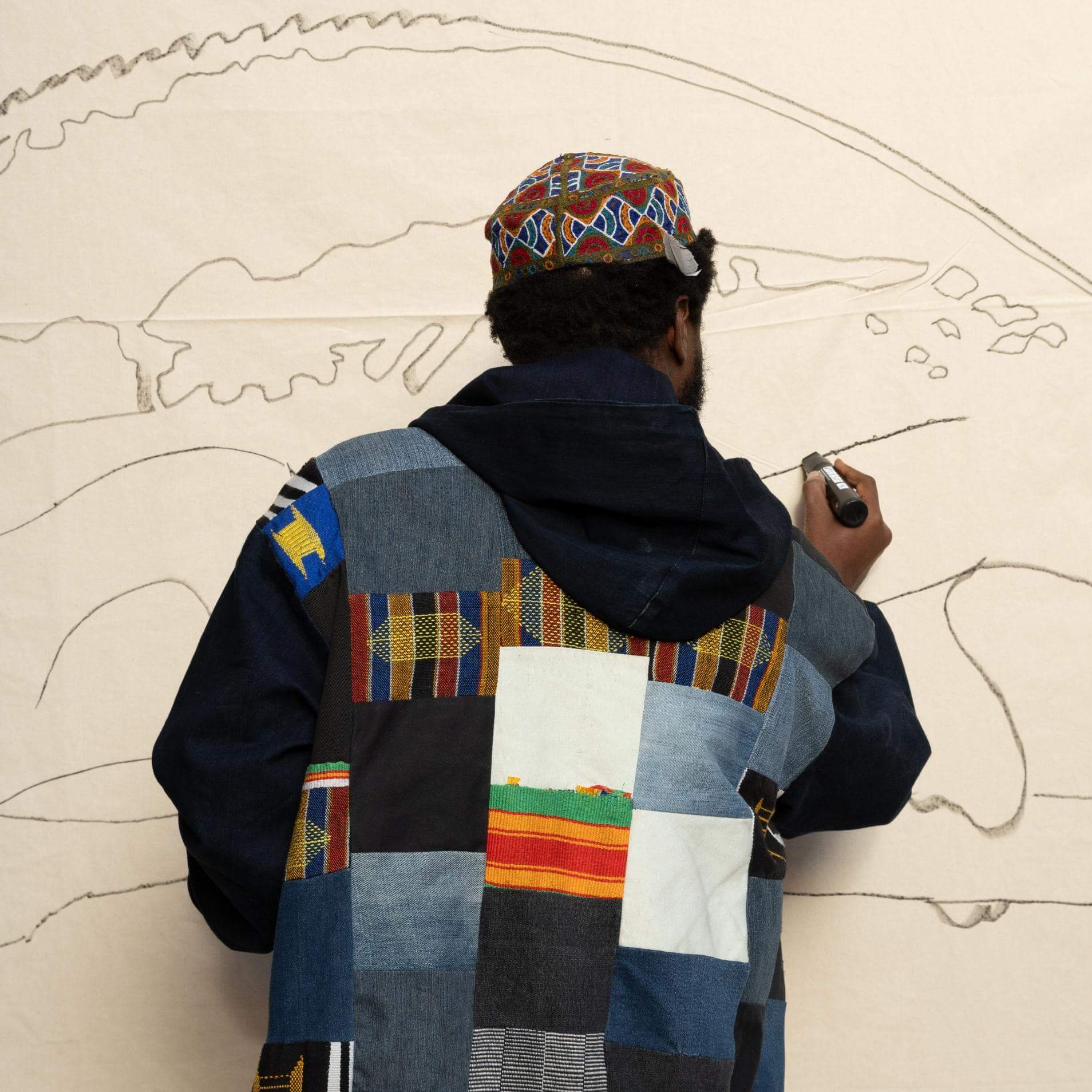 Elom 20ce est un artiste complet, à la fois musicien, poète, performeur, réalisateur et activiste. En s’appuyant sur les enseignements des Bòkɔ́nɔ (Maître des mystères en Ewé), l’artiste nous rappelle que pour avancer, il est essentiel de se tourner vers ce qui fonde notre être. Son art devient ainsi une forme de résistance poétique et intime, une reconquête de la parole et de la pensée africaines, embrassant une forme d’indiscipline intellectuelle.