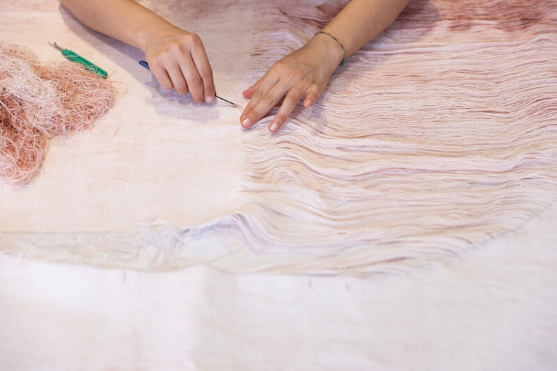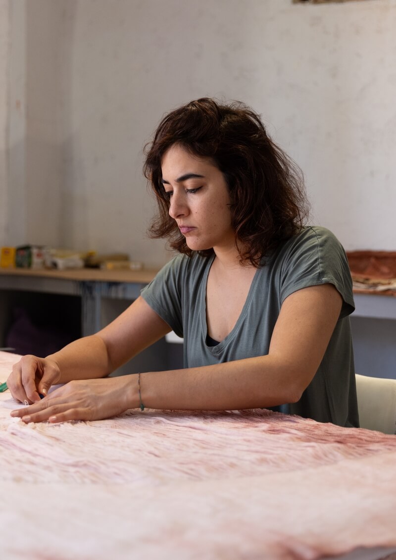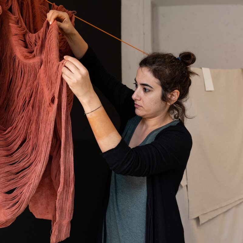Golnaz Payani crée de son histoire personnelle, empreintes et traces sont interrogées, sous une forme florale récurrente. Le temps, ondulant entre visible et invisible, se traduit par sa technique de détissage du tissu. La texture uniforme de l’objet tissé est perturbée, l’idée même de la représentation devient une action utopique. L’élégance de son art, nous dévoile tout en poésie l’âpreté de la violence. Véritable « tissu social », elle intègre quotidien des habitants et savoir-faire ancestral dans une recherche continue de la trace et de sa disparition.