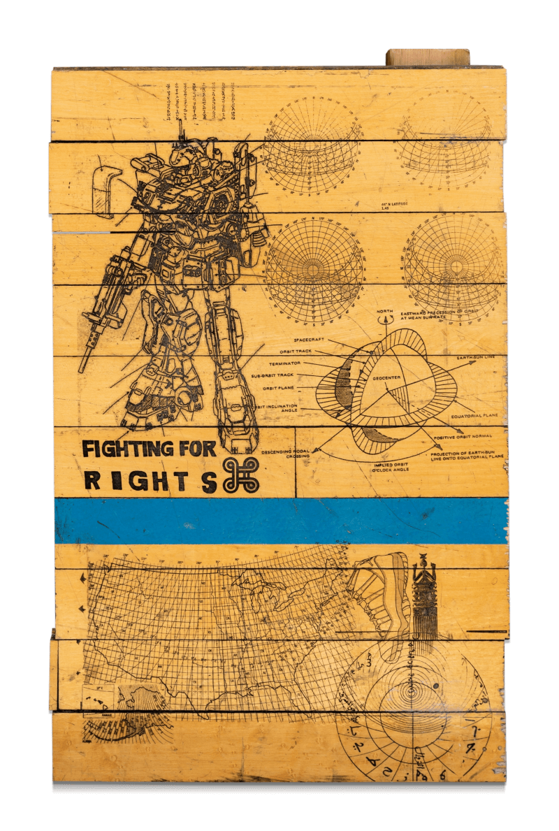 À travers ses œuvres, on peut voir l’utilisation d’idéogrammes soigneusement construits et codés, qui dépeignent son point de vue sur diverses questions sociales et politiques dans le monde entier, la façon dont elles sont liées et, surtout, la façon dont elles affectent notre vie quotidienne. La pratique de Gregory s’inscrit dans une vision élargie de l’histoire, avec un intérêt particulier pour l’interaction humaine et la façon dont elle entraîne la diffusion de la culture dans le monde moderne.