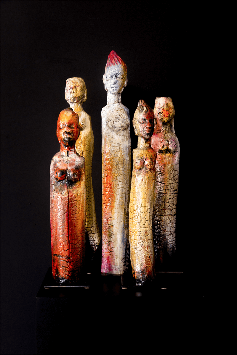 Tels des cocons mêlant fragments de corps associés à une matière soyeuse, les sculptures totémiques et installations de Nathanäel Vodouhè interrogent sur le rapport aux addictions, les jeux de pouvoir entre les êtres et la société hyper-consommatrice. Dans un profond intérêt pour l’être humain, ses œuvres interpellent par les complexités des systèmes sociaux et communautaires qu’elles révèlent. Donnant forme à des portraits animés, ses peintures émergent ainsi comme des temps d’arrêt où le geste rituel est retracé dans toute sa solennité.
