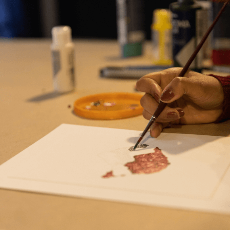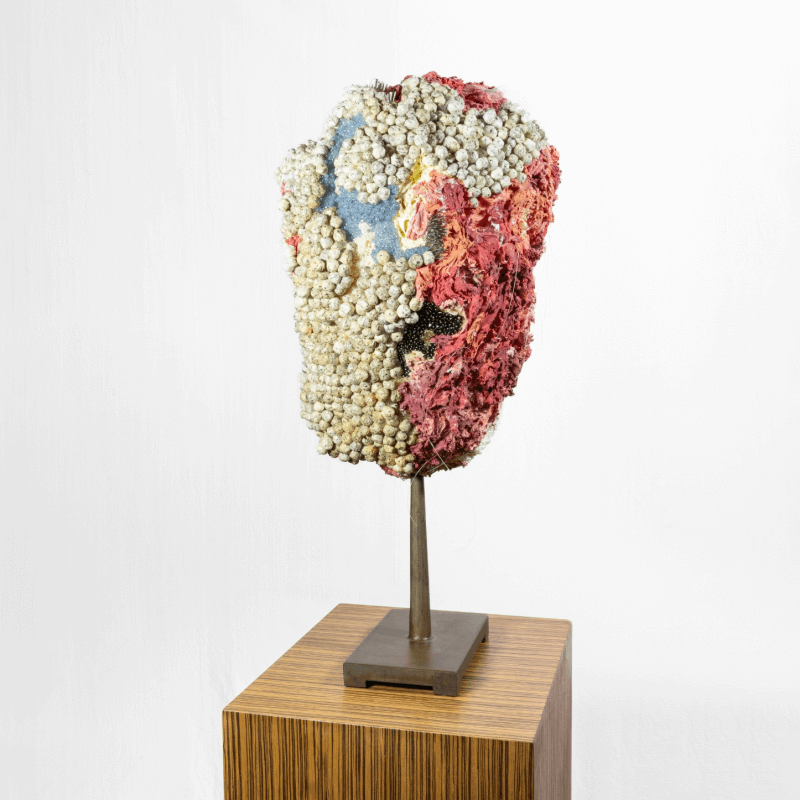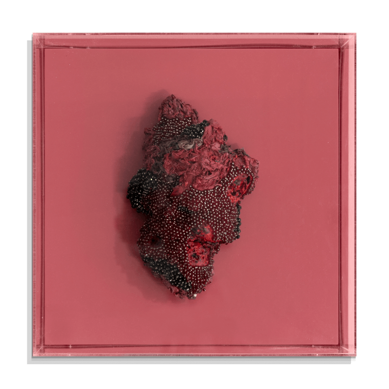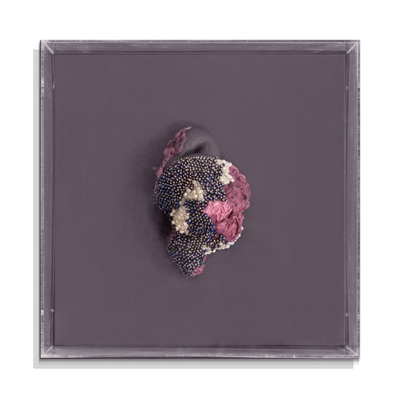 Diplômée de l’Institut des Beaux-Arts de Tétouan, Sabrine Lahrach donne à découvrir une œuvre sensible et poétique. Il est essentiellement question de famille, de transmission et de mémoire dans son travail. Ces souvenirs, on les devine puisés dans une enfance douce et joyeuse. Pas de table rase du passé, l’artiste pose une réflexion sur ce qui nous construit humainement, culturellement, socialement. Elle choisit subtilement ses matériaux : aiguilles, perles, fils, papiers… symboles des resurgissements de son âge tendre. En miroir, elle fait émerger des machines à coudre, des organes du corps humain…ce sont les nouvelles allégories d’une histoire où l’innocence côtoie la conscience de l’être. Lentement, Sabrine Lahrach expérimente, imagine un nouvel abécédaire, compose une autre narration. L’enjeu est de taille, il s’agit de figurer ses émotions et partager les choses de la vie qui nous lient et nous façonnent.