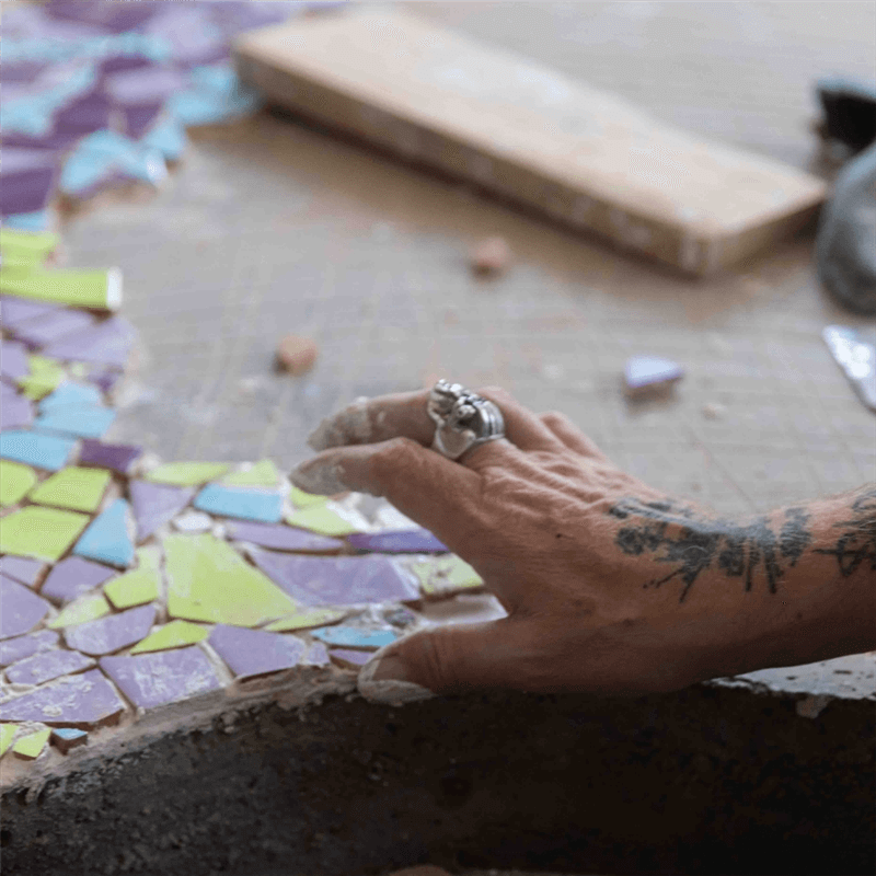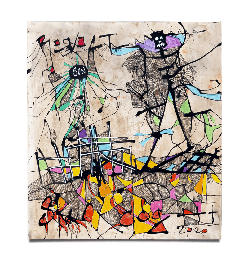 Assemblage de fragments d’une vie et d’un vécu, l’œuvre de Skunkdog constitue de toute évidence un éloge de la folie, un combat contre les dogmatismes et les fanatismes de notre monde. Objets de récupération, collages, peinture vinylique, feutres : c’est dans une certaine effervescence créative que Skunkdog tente de ramener les prétentions métaphysiques de l’homme à leur juste mesure. Du dessin à la sculpture, l’artiste explore en continue de nouveaux médiums. Inspiré par ses multiples résidences à Jardin Rouge, il entame un travail dans les sillages de la mosaïque et du zellige, art traditionnel marocain. Découvrant les potentiels pluriels de la sculpture, Skunkdog engage alors un nouveau chemin vers des figures modelées, où la plasticité du plâtre renforce l’expressivité des silhouettes imaginaires.