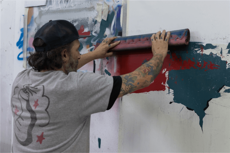 Mouvement et matière se réunissent dans une philosophie de la trace sur les pas de notre mémoire collective. Relatant les écritures murales dont il collecte les images au long de ses voyages, il ne cesse de développer sa création en tissant des liens entre les territoires urbains et culturels. Trait d’union entre mondes multiples, le mur en tant que support et en tant que motif reste au centre d’une réflexion picturale vacillant entre l’abstraction et la figuration. Au carrefour de l’interaction humaine, le mur s’érige comme palimpseste insolite où passé et présent se croisent et c’est sur ces fondements que Tilt crée les bases d’une archéologie du futur.