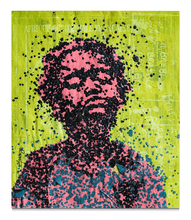 Influencé par le développement socio-culturel que connaît l’Afrique, l’artiste met en exergue des scènes de vies de différentes villes africaines pour nous révéler la richesse et la diversité de ses habitants. Les portraits résonnent comme une série de questionnements pour nous comprendre, comprendre notre société, notre humanité. Depuis 2013, l’artiste poursuit ainsi un travail personnel en utilisant la matière plastique qu’il fait fondre, modifiant son rapport au genre. Chez Yéanzi, la complexité du sujet fait celle du support, il est donc évident de faire recours à des matières que les gens connaissent et côtoient quotidiennement.